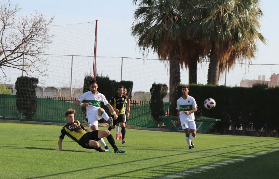 El filial del Elche enlazó su segunda victoria consecutiva gracias a los goles de Mario Guilabert y Héctor Peña en la primera parte. Los de Ángel Donato jugaron desde el minuto 41 con un hombre menos por la expulsión del portero Álex Ruiz