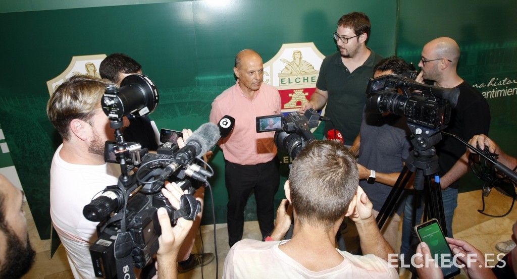El presidente del Elche, Joaquín Buitrago, durante una comparecencia ante los medios. / Elche CF