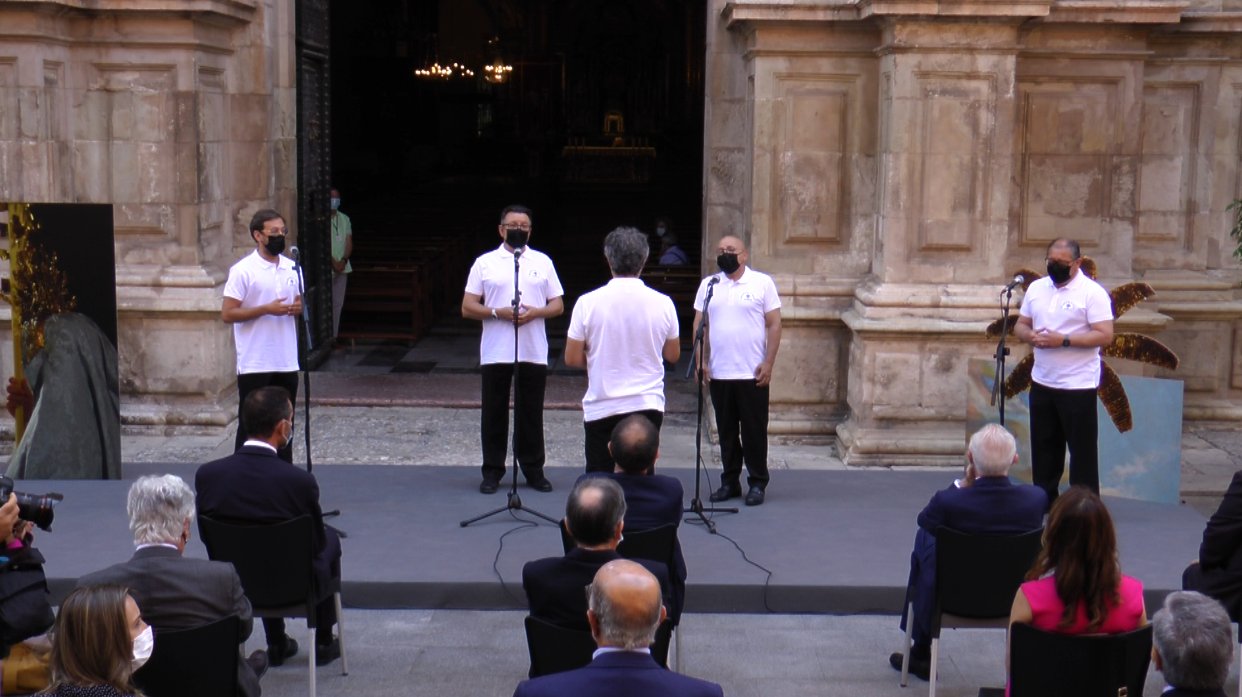 A las puertas de Santa María se ha realizado un acto institucional donde cantores de la Festa han interpretado varios motetes y se ha reconocido la figura de Joaquín Serrano