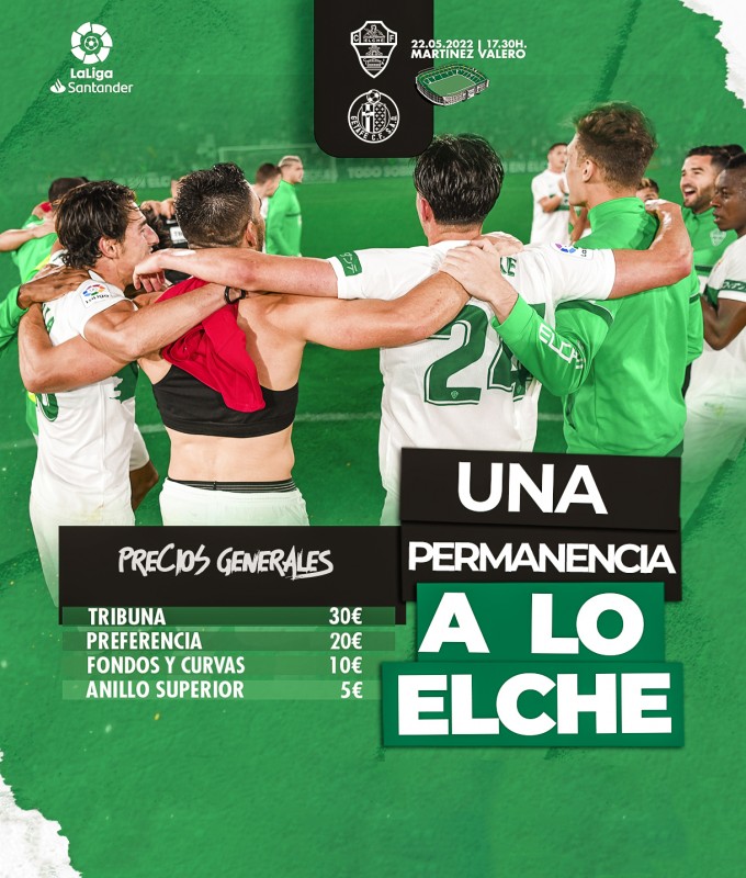 El club ha anunciado que tras el encuentro habrá una celebración por la permanencia. Las entradas para el público general cuestan de 5 a 30 euros