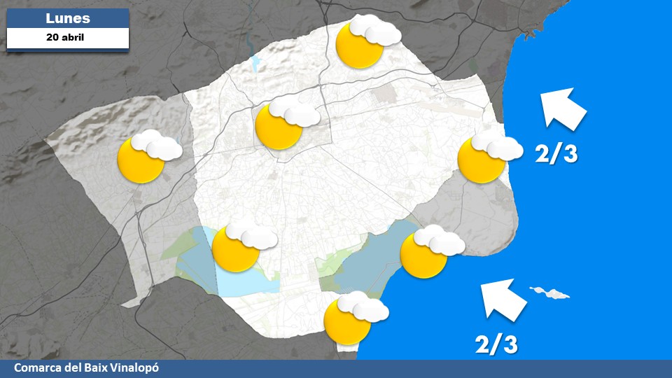 Comenzamos la jornada con niebla de advección en el sur del Camp d´Elx y en Santa Pola. Las altas presiones seguirán garantizando la estabilidad atmosférica con cielos despejados hasta las horas centrales, después llegarán intervalos puntuales de nubosidad alta. Viento en calma por la mañana y flojo de sureste por la tarde. Alcanzaremos una máxima en torno a 23ºC