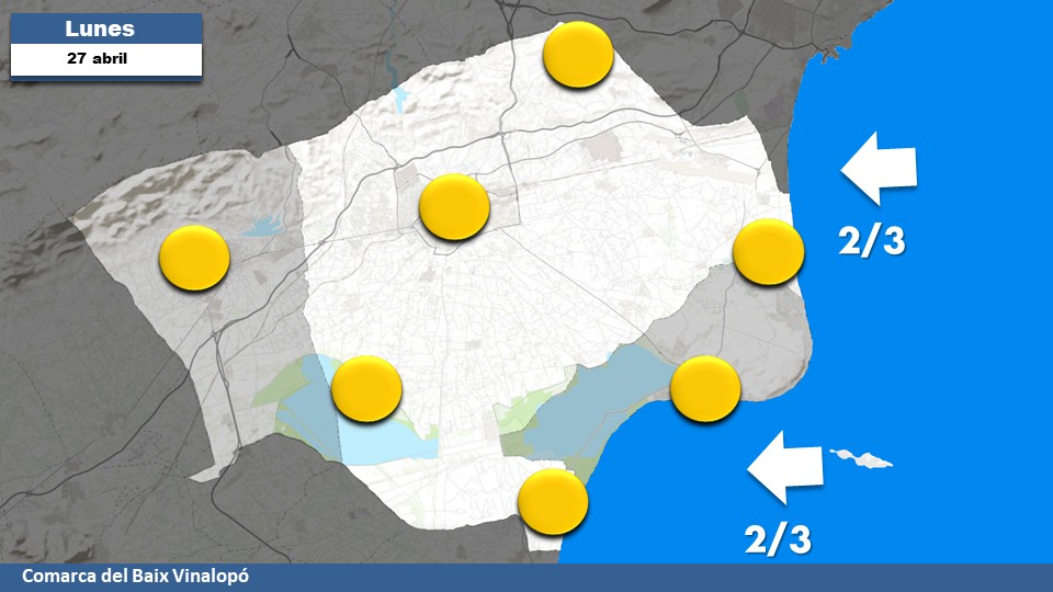 Con la retirada del aire frío en altura volverá la estabilidad atmosférica y subirán las temperaturas diurnas. Intervalos puntuales de nubosidad a primeras horas y después tendencia a cielos poco nubosos o despejados. Viento en calma por la mañana y flojo de levante por la tarde. Min 13ºC / Max 21ºC