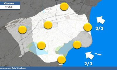 Continuará la estabilidad atmosférica gracias la dorsal anticiclónica en una jornada con amiente soleado y paso de intervalos de nubosidad alta. Viento en calma por la mañana y flojo de levante por la tarde. Min 14ºC / Max 25ºC