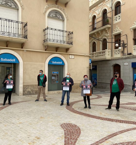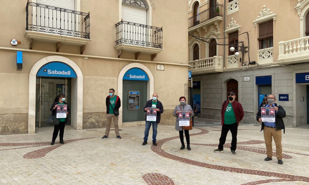 Esta mañana la Plataforma de Afectados por las Hipotecas se ha concentrado, con las medidas de seguridad, en la Plaça de Baix frente a la sucursal del Sabadell para protestar por el intento de desahucio de un ilicitano el pasado...