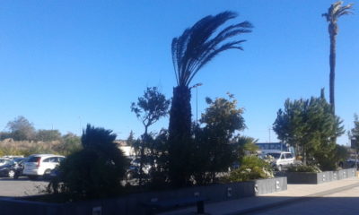 Los bomberos han estado trabajando durante toda la mañana por desprendimientos de cornisa, ramas caídas y elementos de comercios que han salido volando