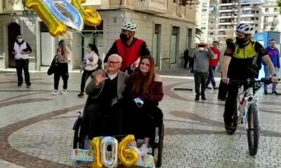 Acompañado de su nieta y escoltado por los agentes de movilidad de la Policía Local que le pasearon en el triciclo para que volviera a ver...