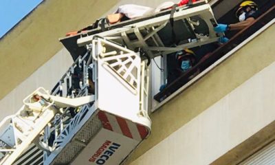 Los efectivos necesitaron una autoescalera para bajar a la víctima en camilla